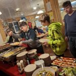 Nachdem das Buffet eröffnet wurde, zeigten unsere Jugendlichen überraschend schnelle Reflexe und sicherten sich sofort die ersten Plätze (derartige Reaktionszeiten sehen wir selten im Training!). Danach gingen wir gestärkt zum sportlichen Part über und verteilten uns auf die Kegelbahnen.